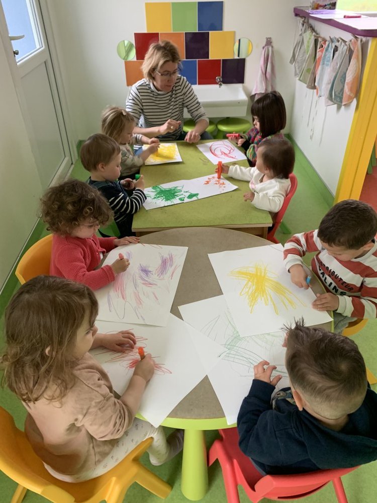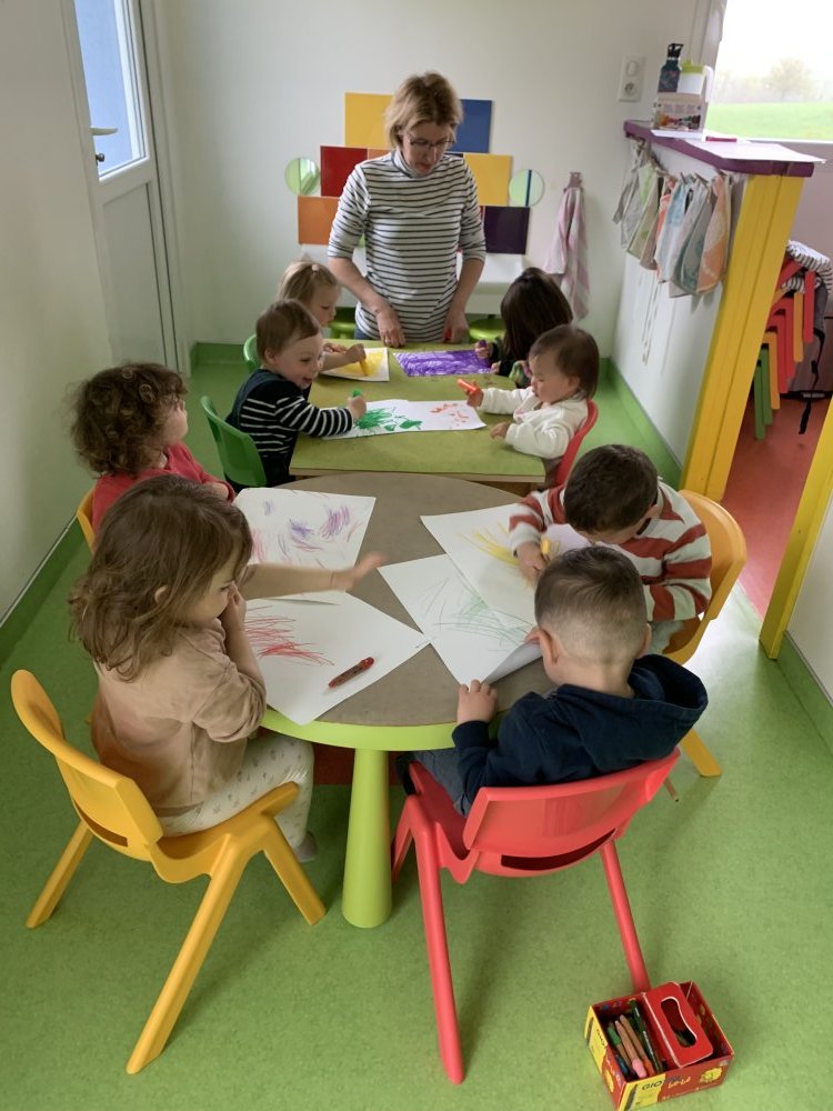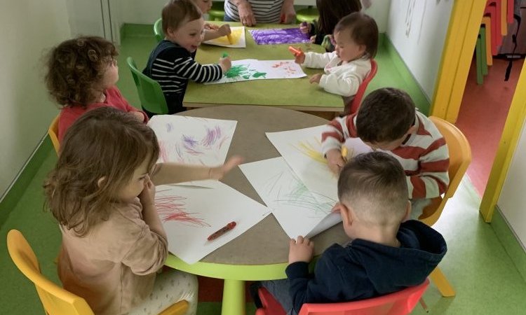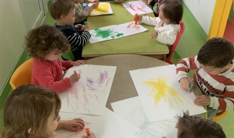 Thilda, Elia, Morgan et Milo dessinent au crayon pour que Caroline puisse créer des papillons.