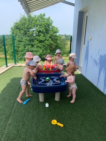 Aujourd'hui, deux activités pour deux projets déco ! Magalie fait de la peinture propre avec Laëlia, Charlie, Léandre et Naussica pour réaliser un potager. Thilda, Elia, Morgan et Milo dessinent au crayon pour que Caroline puisse créer des papillons. Une déco tout en couleurs pour cette année.