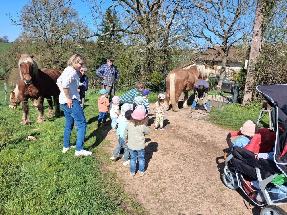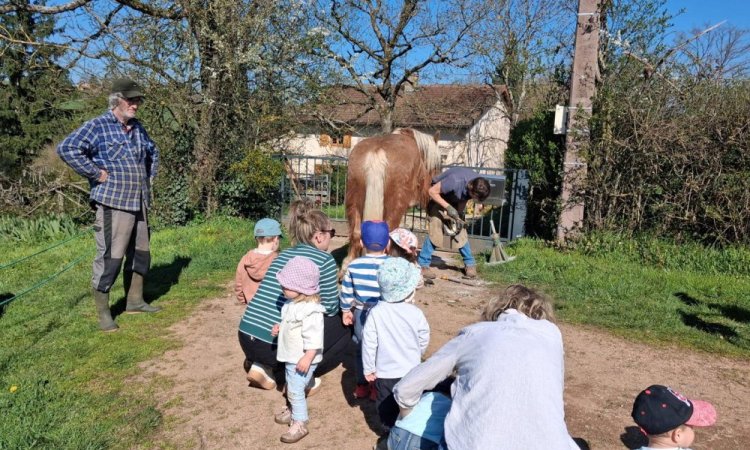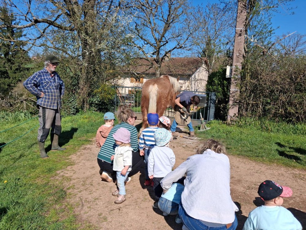 Jeudi, 19 mars, 2026 Voir toute l'actualité En allant nous promener avec les enfants, nous avons eu la chance de pouvoir observer le maréchal-ferrant parer les cheveaux de traits que nous avons l'habitude de voir à la crèche. Nous étions tous captivés grands et petits.