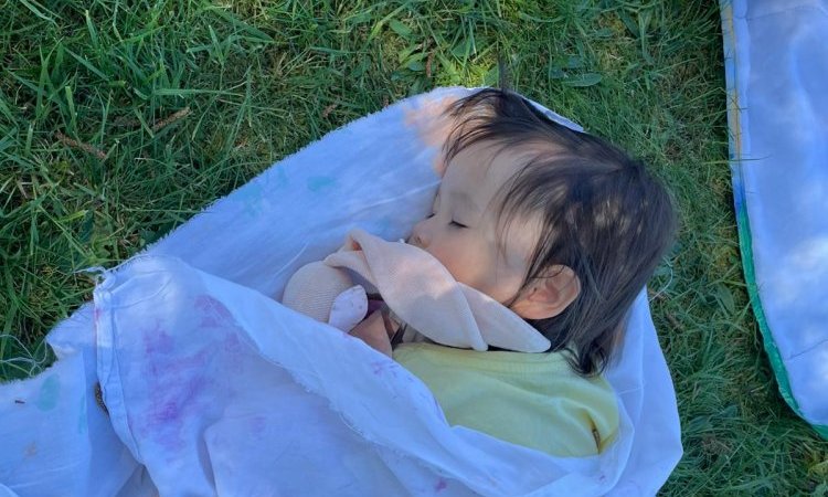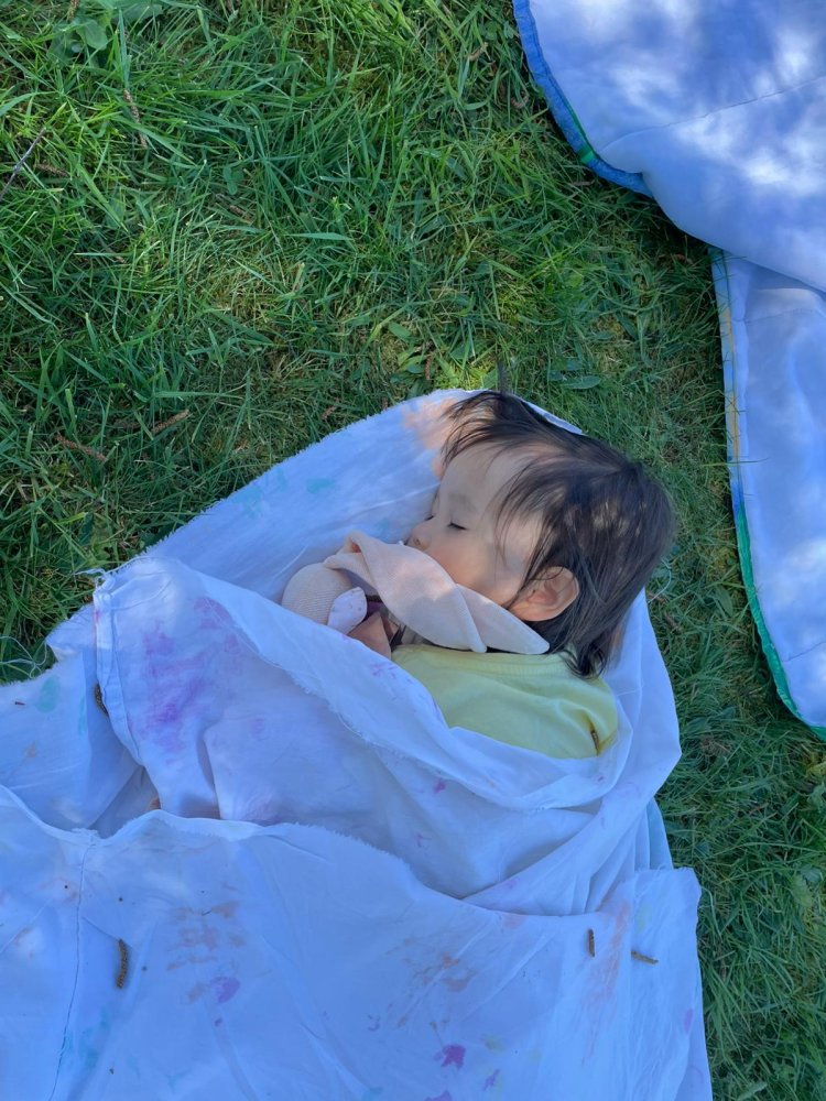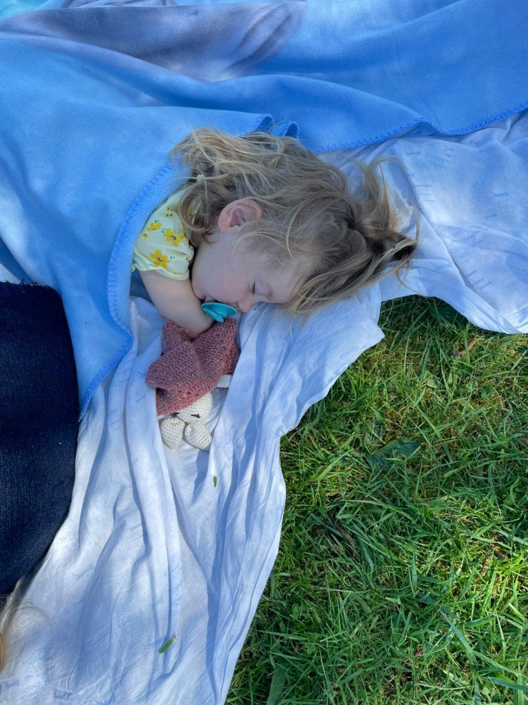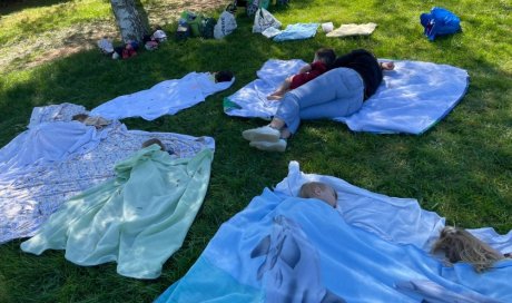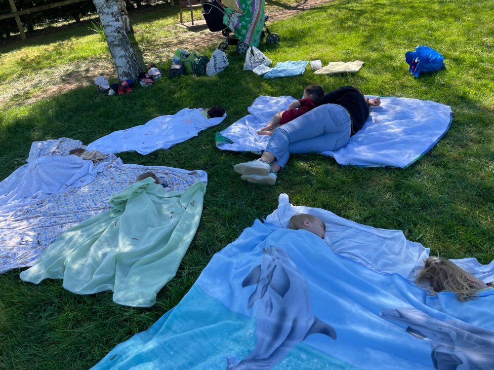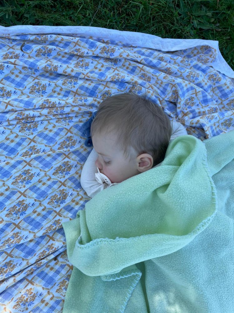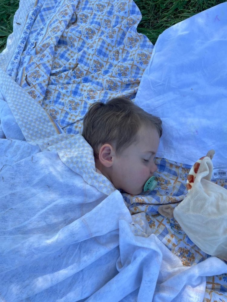 Après avoir joué et pique-niqué à l'agorespace de notre petit village de Chassigny sous Dun, nous avons fait la sieste à l'extérieur sous les arbres.